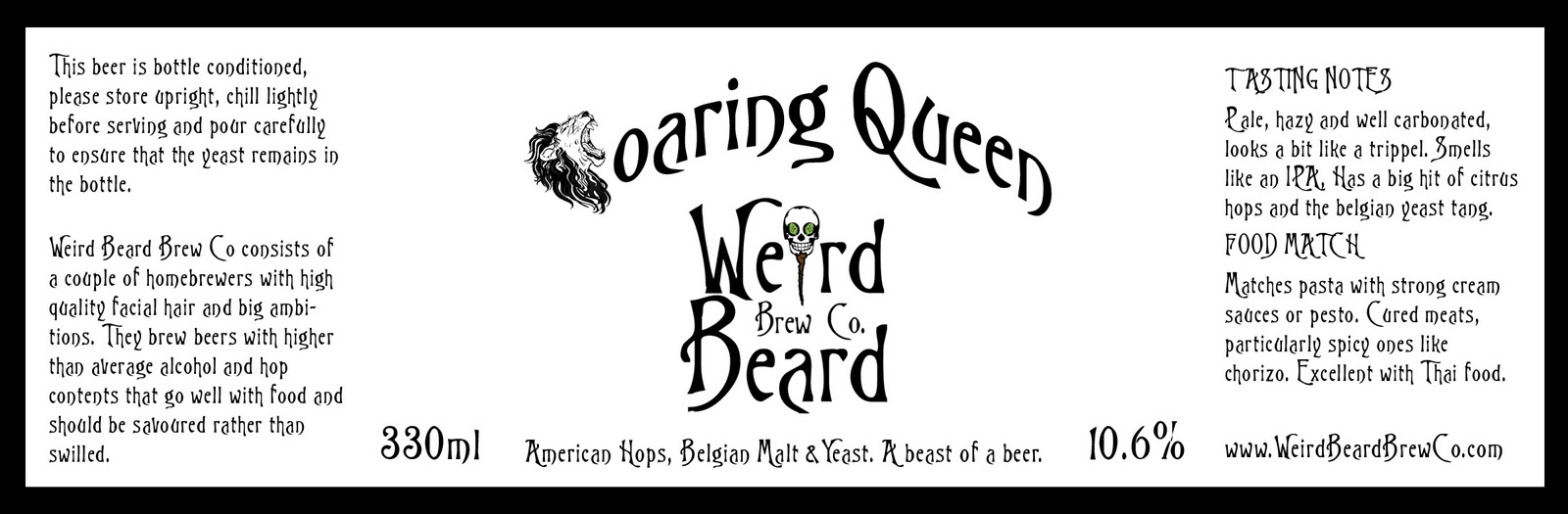 ReplyDelete@Sam Roaring Queen is a real beer, unfortunately I just finished the last bottle over the weekend. I really must brew it again though. RedPenguin and Decadence are likely to be core beers and I was thinking of fairly simple labels for these so happy that there is approval for them.